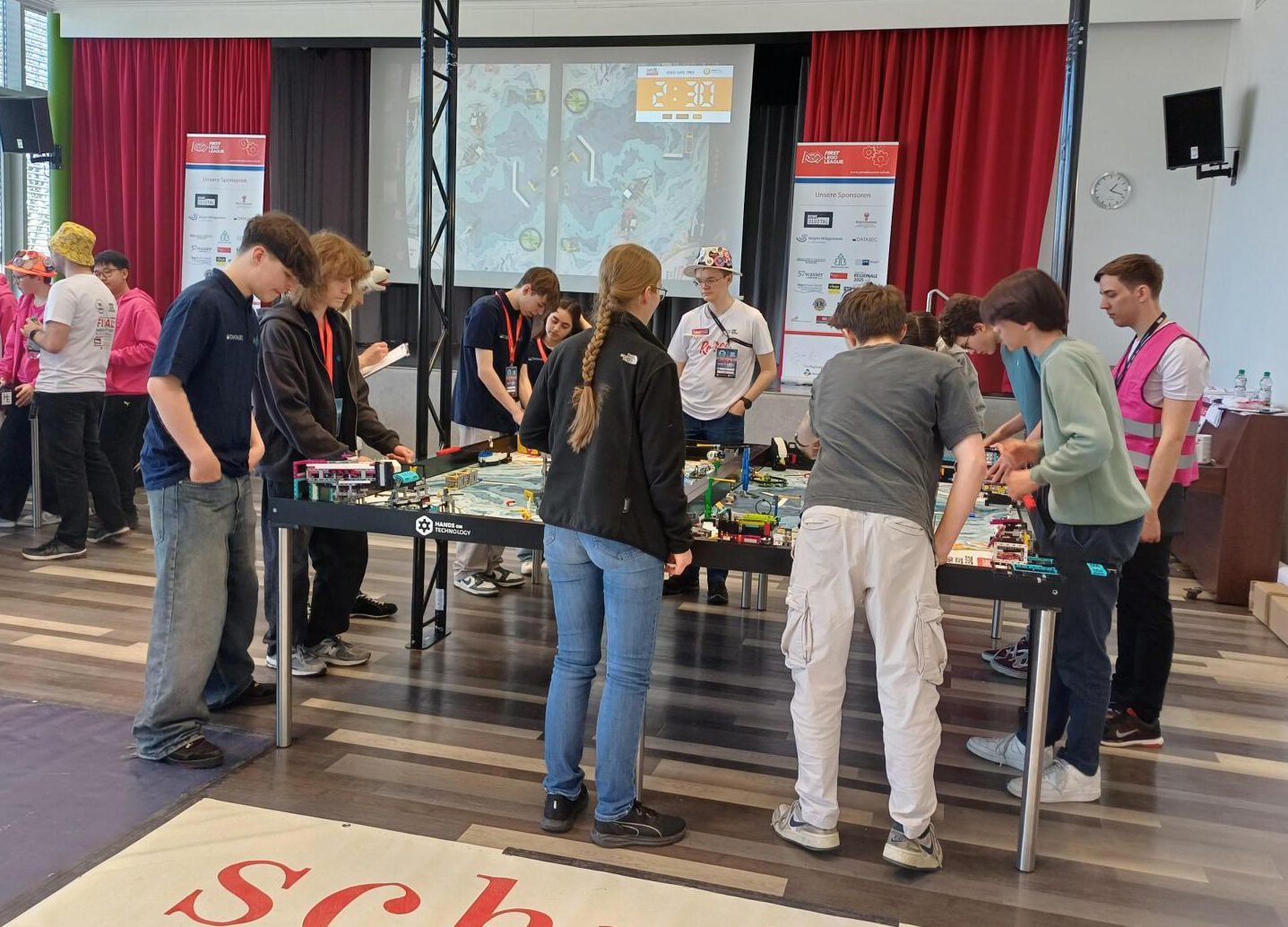 Nachdem wir seit 2019 jedes Jahr mit dem PhysikInformatik-Kurs am Regionalwettbewerb der FirstLegoLeague in Siegen teilgenommen haben, hatten wir dieses Jahr eine ganz besondere Chance. Da das D-A-CH-Finale der FLL, bei dem die 30 besten Teams aus Deutschland, Österreich und der Schweiz gegeneinander antreten, in diesem Jahr in Siegen stattfand, erhielten wir als Lokalteam eine „Wildcard“, um die Stadt Siegen beim Finale zu vertreten.