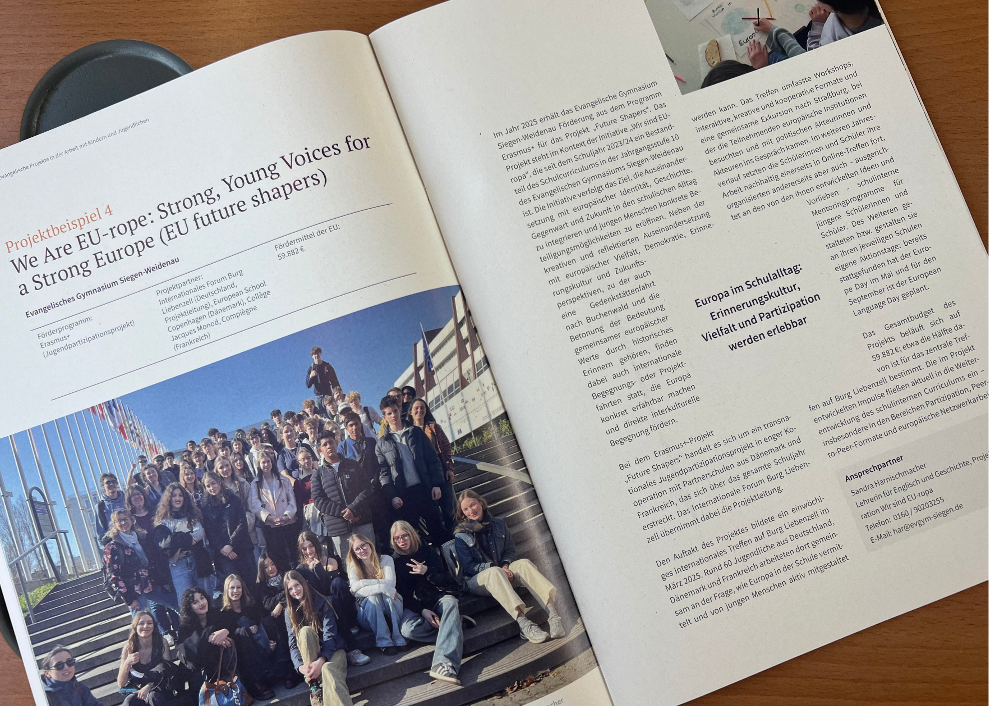 Europa erleben, gestalten und verstehen – mit diesem Anspruch ist am Evangelischen Gymnasium Siegen-Weidenau im Frühjahr 2025 das Erasmus+-Projekt „Future Shapers“ gestartet, aktuell auch in der EKD-Broschüre nachzulesen. Das Projekt ist Teil der schulinternen Initiative „Wir sind EU-ropa“, die seit dem Schuljahr 2023/24 fester Bestandteil des Curriculums in der Jahrgangsstufe 10 ist. Ziel ist es, europäische Identität, Geschichte und Zukunftsperspektiven in den Unterricht einzubinden und Schülerinnen und Schülern konkrete Beteiligungsmöglichkeiten zu eröffnen.