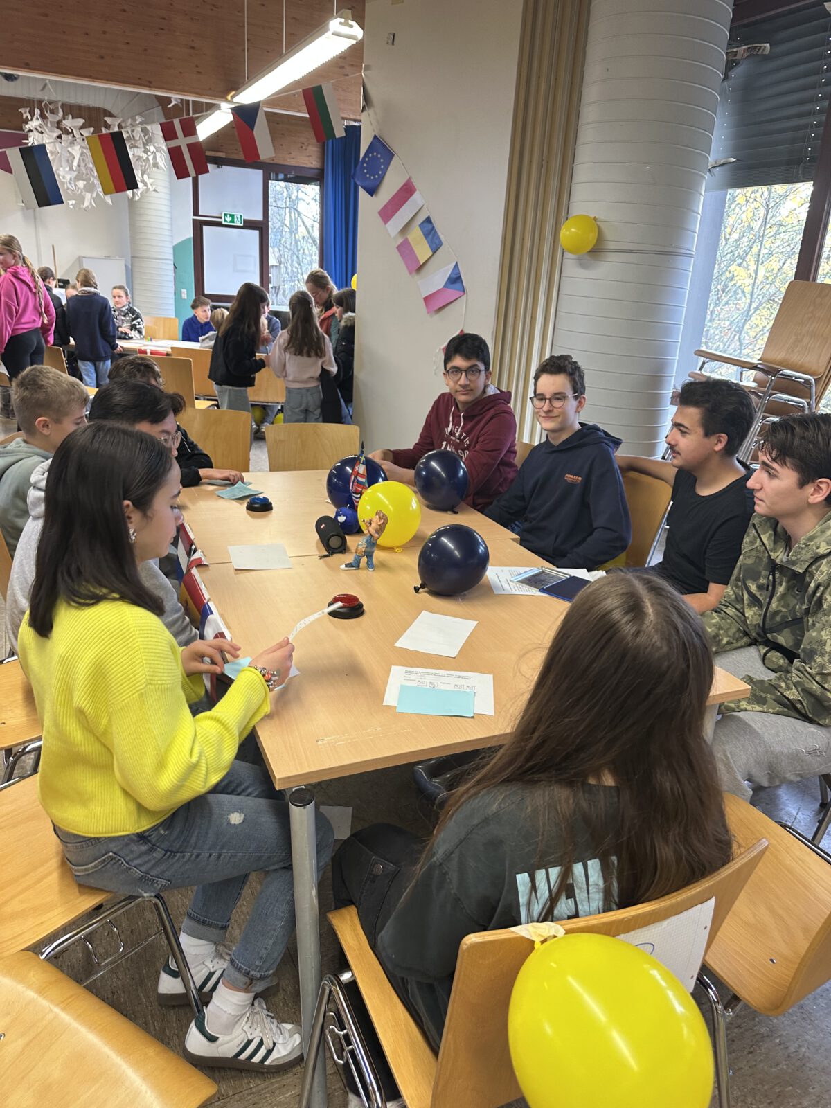Organisiert wurde der Tag von der Klasse 10b im Rahmen des Faches „Wir sind Europa“. Die Aktion ist Teil unseres Erasmus+ Projekts „We are EU-rope – Young strong voices for a strong EU-rope“, das gemeinsam mit dem Internationalen Forum Burg Liebenzell sowie Partnerschulen aus Frankreich und Dänemark durchgeführt wird. In diesem Projekt beschäftigen sich Schülerinnen und Schüler damit, wie sich europäische Themen kind- und jugendgerecht, spannend und mit einer Portion Spaß vermitteln lassen – eine Idee, die an diesem Tag besonders greifbar wurde.