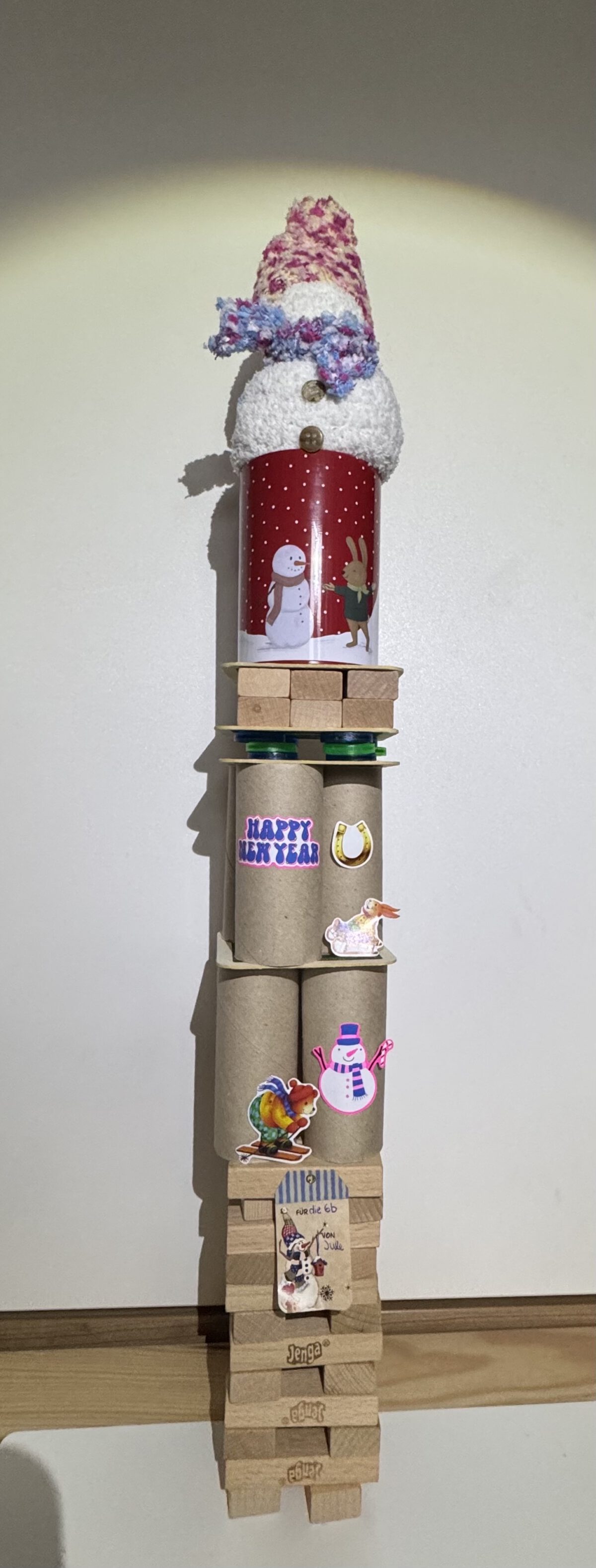 Aufgrund des Schneesturms fand der Kunstunterricht der Klasse 6b heute im Distanzunterricht statt. Unter der Anleitung von Frau Schönecker erhielten die Schülerinnen und Schüler die Aufgabe, aus vorhandenen Gegenständen zu Hause Türme zu bauen. So entstanden kreative Bauwerke aus Alltagsmaterialien wie Büchern, Verpackungen, Kissen oder Bauklötzen.