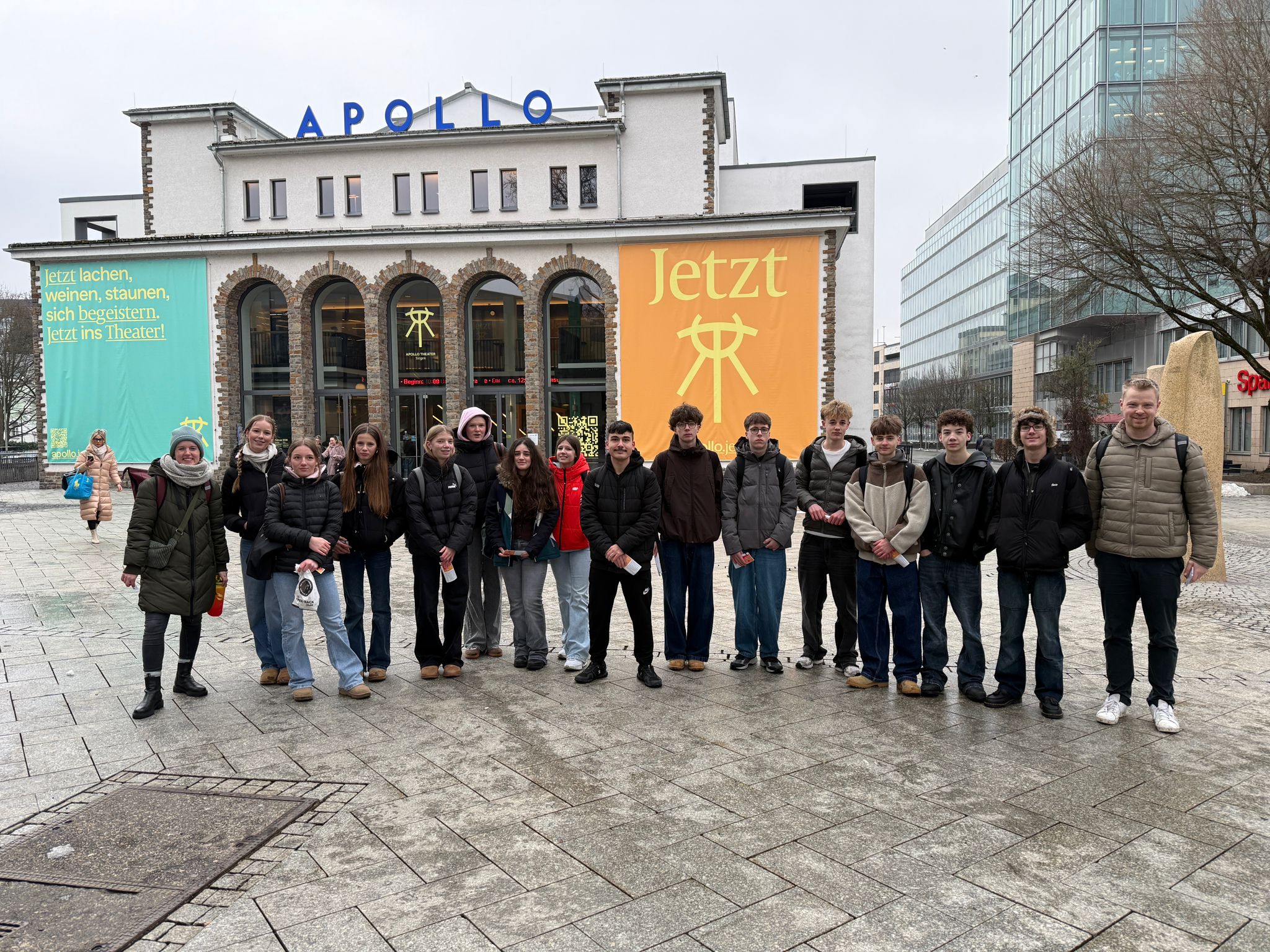Mehrere Klassen und Kurse des EVAU haben das Theaterstück MachtWorte! im Apollo esucht. Die Inszenierung erzählt von einer Gruppe, die in einem Resozialisierungsprojekt zusammenkommt und eine gemeinsame Aufgabe erhält: einen positiven Song zu schreiben und ihn öffentlich aufzuführen. Was zunächst nach einem einfachen Ziel klingt, wird zur großen Herausforderung, weil sehr unterschiedliche Lebensentwürfe, Haltungen und Konflikte aufeinanderprallen.