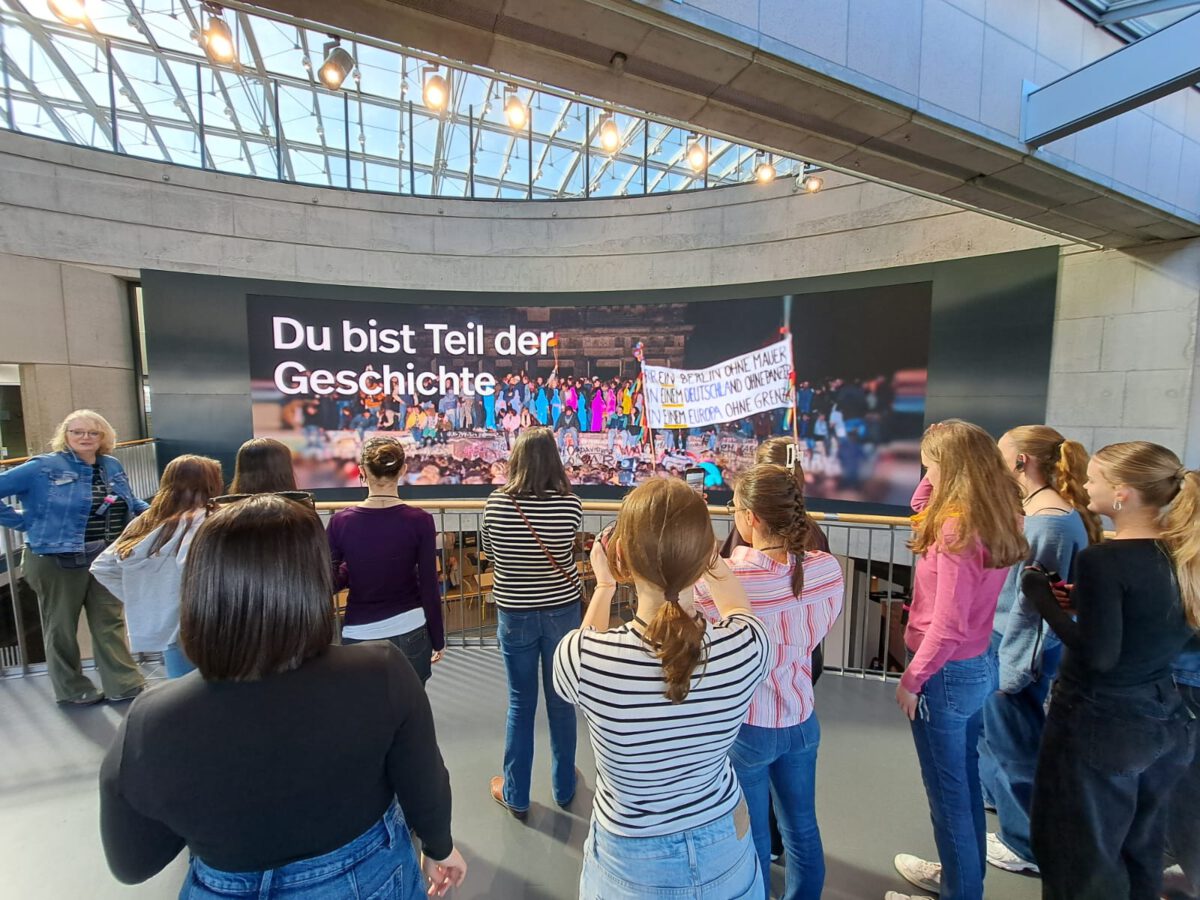 Am Donnerstag ging es dann gemeinsam nach Bonn – dort wurden bei einem Besuch des Hauses deutscher Geschichte und einer eigenständigen Erkundung der Stadt viele spannende Perspektiven deutlich. Das Motto der neuen Ausstellung im Haus der Geschichte – „Auch DU bist Geschichte“ war eine spannende, interaktive Ergänzung des Projekts.