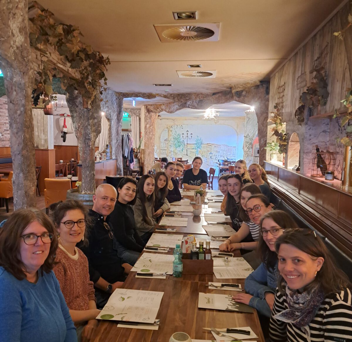 Nach dem gemeinsamen Auftakt, einem Zusammentreffen von Lehrerinnen der drei Schulen im Januar, (Austausch: We are EU-rope – EVAU – Evangelisches Gymnasium Siegen-Weidenau) geht es nun weiter mit gegenseitigen Besuchen. Dafür schickt jede Schule kleine Delegationen von jeweils 5 Personen (2 Lehrpersonen und 3 Schüler*innen) für 4 Tage in die anderen beiden Länder, um Einblicke in den Schulalltag zu gewinnen. Jede Schule ist also einmal Gastgeber, in dieser Woche machte das Evau den Auftakt.